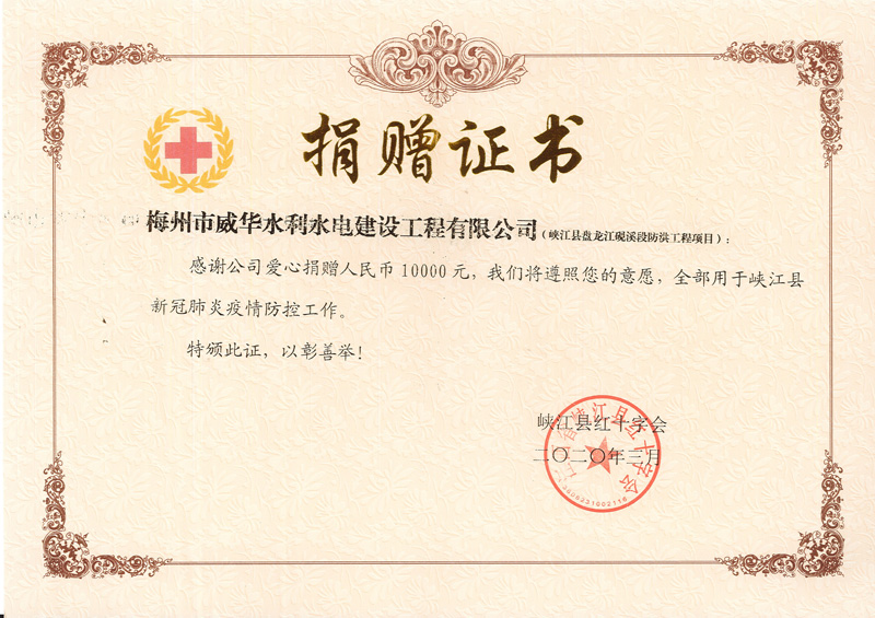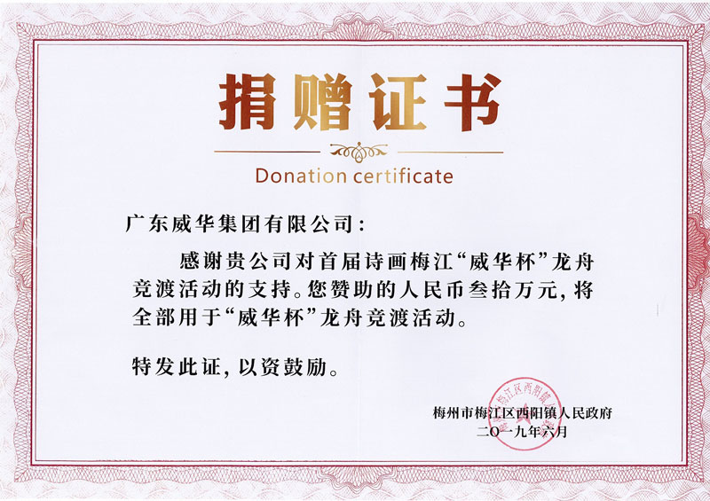2019年捐贈(zèng)證書(shū)(威華集團(tuán))
